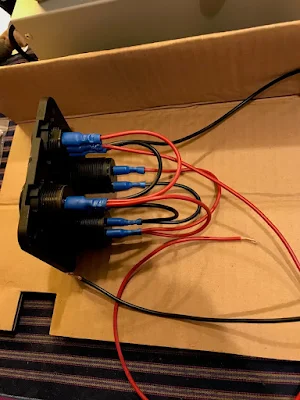Came up with a plan after looking closer at everything. It will require more work than I thought including some carpentry and three battery switches and running much thicker gauge wire from the battery bay to the power center on the other side of the coach. I wired up the USB socket panel and tested it with a 9 volt battery. Looks like it works!
